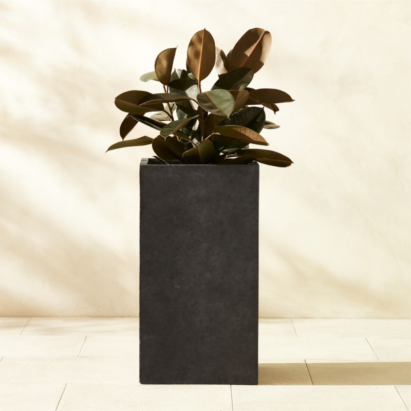 Overflowing greens contrast gorgeously with this industrial design in dark grey. Concrete squares up as a rectangular outdoor planter that forms a sculptural divide between spaces. CB2 exclusive.