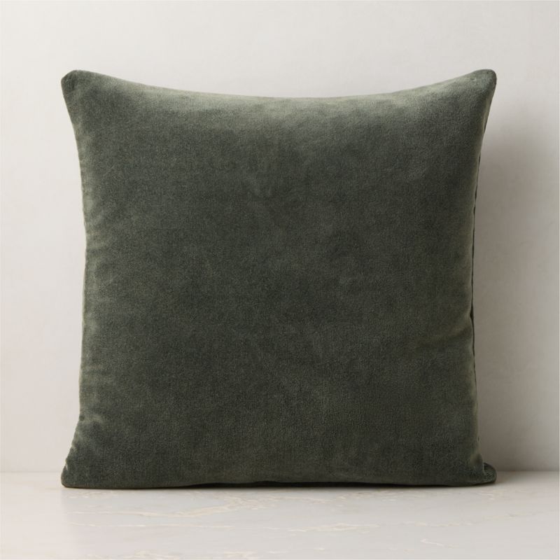 In stock and ready to ship. Loading...CB2SKU 474715Encino Smoked Green Organic Cotton Stonewashed Velvet Throw Pillow with Down-Alternative Insert 20"x20"$89.95Ships free0 of 2 purchasedAdd to Cart