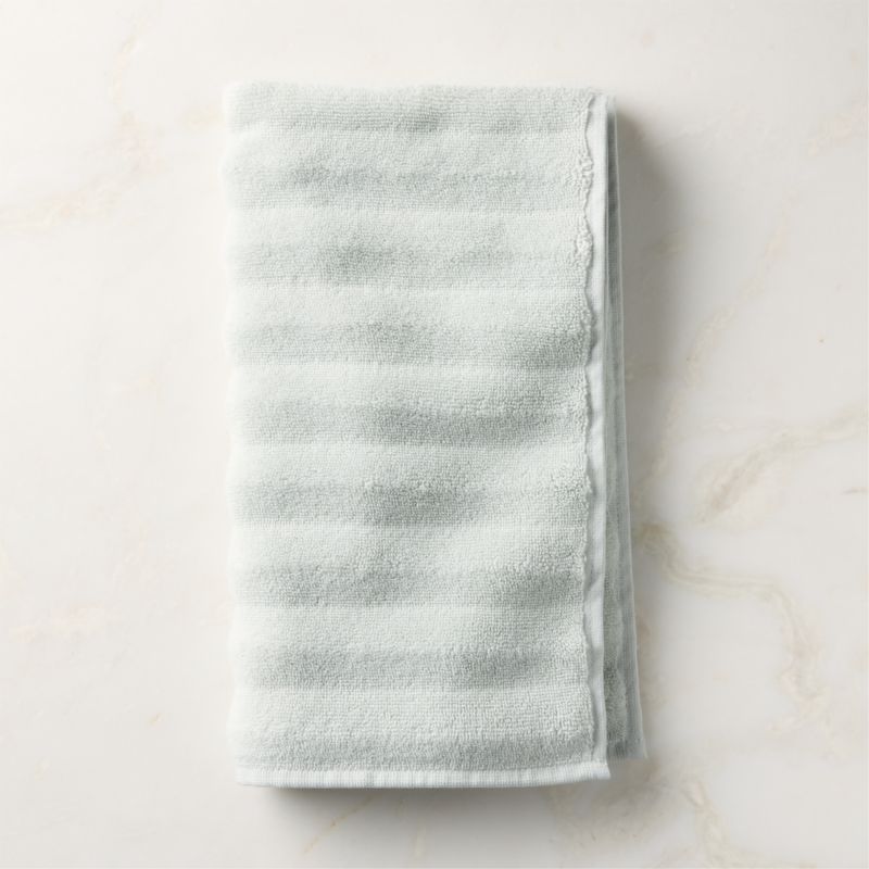 In stock and ready to ship. Loading...CB2SKU 449361Matin Wavy Organic Cotton Mist Green Hand Towel$18.95Ships free0 of 4 purchasedAdd to Cart