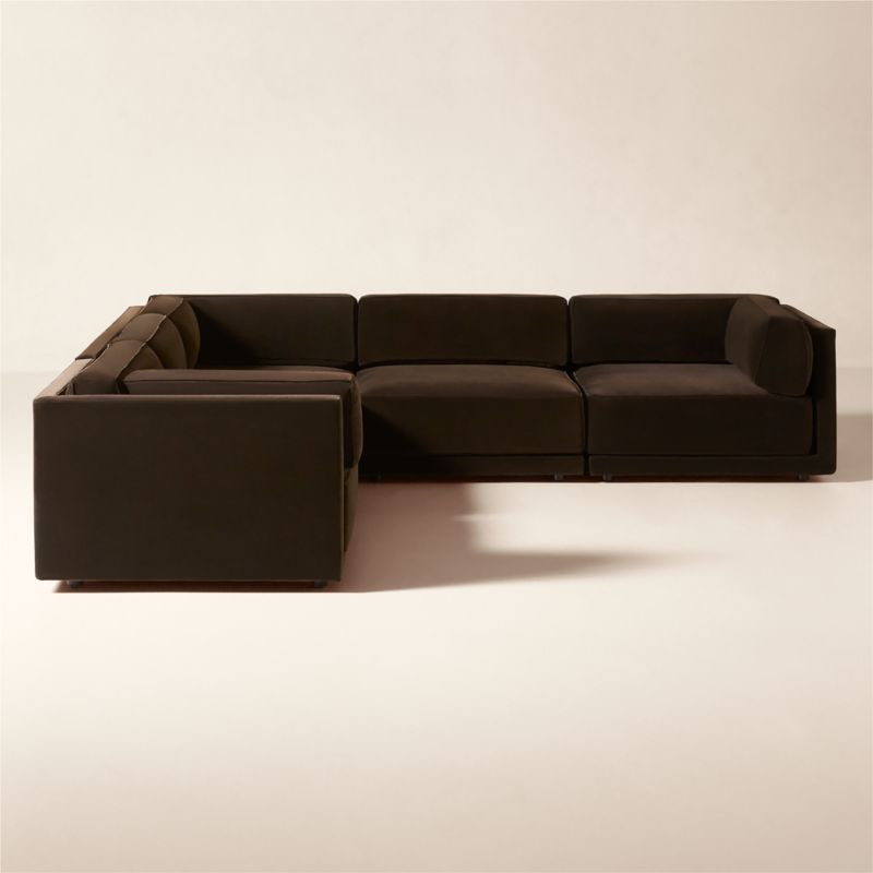 Purchase now and we'll ship when it's available. Estimated in mid March 2026.Loading...CB2SKU 679636Oriole 5-Piece L-Shaped Dark Brown Performance Velvet Modular Sectional Sofa$8,095.000 of 1 purchasedAdd to Cart