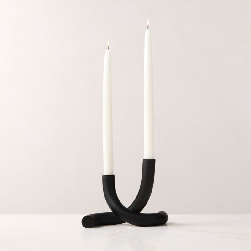 In stock and ready to ship. Loading...CB2SKU 463416Blythe Black Double Taper Candle Holder$49.95Free Shipping Eligible0 of 1 purchasedAdd to Cart