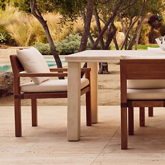 Craving an IG-worthy summer destination? With CB2's collection of modern outdoor patio furniture, look no further than your own porch or backyard. If you're searching for a spot to hang with friends, explore different contemporary outdoor patio furniture styles. Weather-resistant sofas and sectionals are the perfect place to kick back with large crowds, while outdoor lounge furniture like a chaise or accent chair is a comfy place for some solo R&R. Looking for something sized between a sectional and chair? Outdoor loveseats combine cozy support with space-efficient style. Regardless of what modern outdoor patio furniture speaks to you, keep a side table or outdoor ottoman close-by to stash summertime essentials—think drinks, sunscreen and a good book. Then, consider adding soft throw blankets to your backyard patio furniture for maximum comfort.